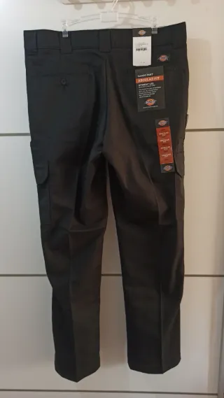 Pantalones cargo Dickies en color negro, talla 34/32. (Talla 44 eu) Cuentan con un ajuste recto y son ideales para el día a día. A estrenar. - Bolsillo para el móvil. - Tejido con tecnología Flex para mayor comodidad. - Cierre de cremallera y botón.