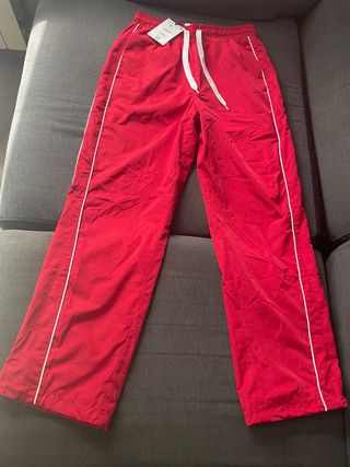 Precio dispuesto a negociar. Descuento por lotes. Pantalón rojo de la marca Bershka, con un diseño moderno y llamativo. Perfecto para quienes buscan un toque de color en su armario y un estilo casual contemporáneo. Detalles: Talla S Color rojo intenso Corte actual y favorecedor Tejido cómodo, ideal para looks casuales - Cintura con cordón ajustable. - Detalle de ribete blanco en los laterales. - Puños elásticos en los tobillos. Estado: En muy buen estado, sin manchas ni signos de desgaste. Costuras y cierre impecables. Envío rápido y seguro.