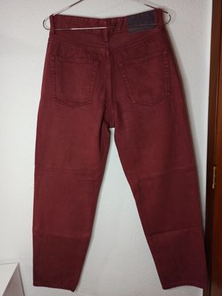 Pantalón Bershka denim estilo ‘90s wide en color vinotinto. Usado, en muy buen estado, cómodo y moderno. - Tiro alto. - Cierre de cremallera y botón. - Bolsillos delanteros y traseros. Vendo artículos nuevos y usados en muy buen estado. Entrega en mano en Valencia o envío por la plataforma. Respondo rápido.