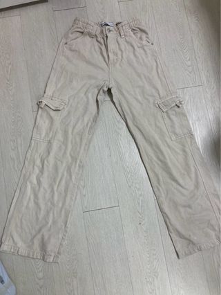 Pantalón cargo de Bershka en color beige. Diseño moderno y cómodo. Talla S - Bolsillos laterales. - Cintura elástica.