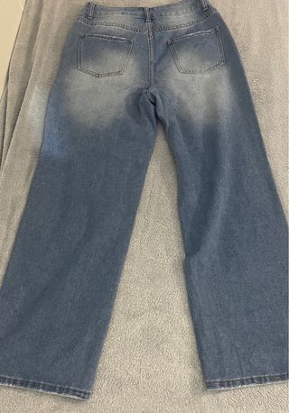 Vaqueros de corte ancho de la marca Shein. - Color azul claro con efecto desgastado. - Cintura alta. - Pierna ancha y recta.