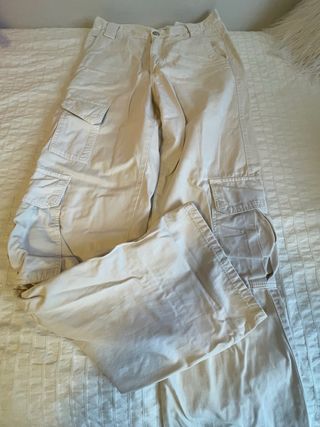 Pantalones cargo color beige cómodos.