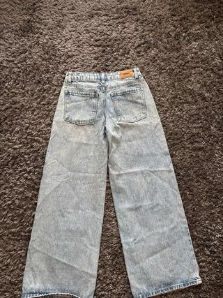 Pantalones vaqueros de corte ancho con un diseño desgastado y rotos. - Estilo moderno. - Acabado con bajos deshilachados. Los he usado muy pocas veces, por lo que están prácticamente nuevos. Los puedo entregar en mano tanto en Huesca como en Zaragoza.