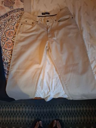 Pantalón Vaquero beige. Talla 27. Lleva lycra.
