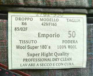 Elegante traje de dos piezas de Emporio Armani hecho a mano. Modelo 429/F165 Talla 50. Se pueden pedir tallas concretas de chaqueta y pantalón Nuevo, sin estrenar. - New Zealand Merino Wool