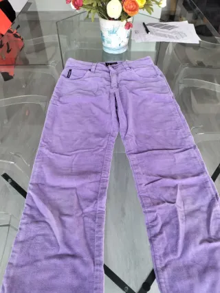 Pantalón de la marca Armani Jeans. Talla 26 (se corresponde aproximadamente con una talla 36; no obstante ver medidas en las fotos). De un color lila precioso. En perfecto estado.