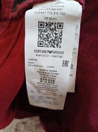 pantalon Armani talla 31 americana / 41 europea slim fit nuevo a estrenar