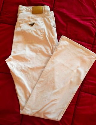 magnífico pantalón Giorgio Armani auténtico nuevo. sólo puesto una ocasión. color blanco. Armani Jeans. detallo fotos de cerca para certificar autenticidad. talla 31. medidas exactas en las fotos. linea Confort Fit.