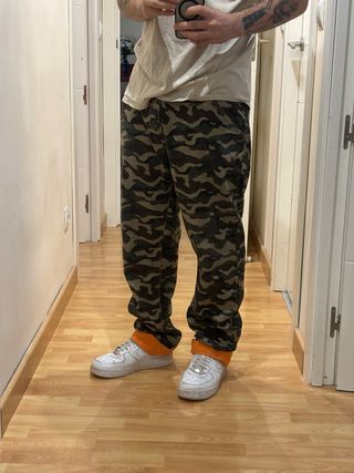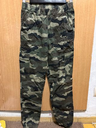Pantalón camuflaje de la marca H&M Divided, para chico prácticamente nuevo Elásticos La talla se ve en las fotos T28 Tipo cargo pero sin tantos bolsillos Ropa cómoda y deportiva - Diseño de camuflaje en tonos verdes y olivas. - Cintura elástica con cordón. - Puños ajustados en los tobillos. Hago dto si coges más cosas de mi perfi