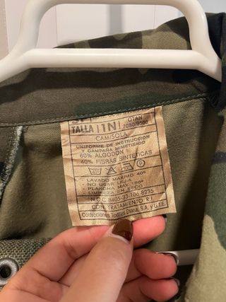 Chaqueta de estilo militar con estampado de camuflaje. - Cierre de botones. - Dos bolsillos en el pecho. - Cuello camisero.