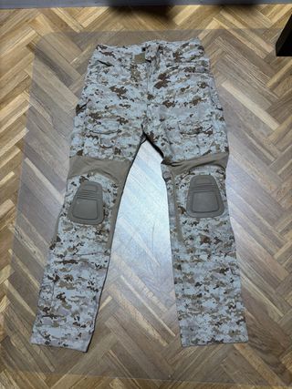 Pantalones de camuflaje diseñados para airsoft y actividades tácticas. - Diseño con múltiples bolsillos. - Incluye rodilleras integradas. - Patrón de camuflaje multi-terreno. pantalones con poco uso solo dos partidas jugadas en perfecto estado medidas cintura: 53 altura: 1,10