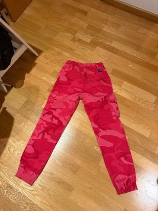Pantalones cargo de camuflaje de la marca Bershka. Son cómodos y prácticos. - Estampado de camuflaje. - Cintura elástica con cordón. - Bolsillos cargo laterales. - Bajo ajustable con cordón.