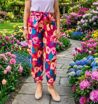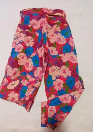 Pantalones Slouchy Floral ZARA - ¡Como Nuevos! 🌸 ¡Dale color a tu armario con estos pantalones de Zara! Tienen un estampado floral espectacular en tonos fucsia, azul y melocotón, perfectos para primavera o verano. Son de corte tipo paperbag con lazo en la cintura, muy favorecedores y cómodos. Estado: Impecable, como nuevo (puesto solo un par de veces). Marca: Zara. Talla: S (36). Estilo: Talle alto con cinturón ajustable del mismo tejido. Medidas (tomadas en plano): 📏 Cintura: 35 cm. 🍑 Cadera: 44 cm. 📐 Largo: 91 cm. Ideal para combinar con una camiseta básica o una blusa blanca y tacones nude como en la foto. ¡Sientan de maravil
