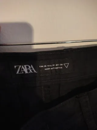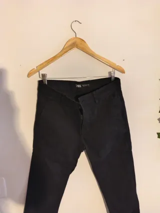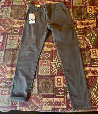 Pantalones tipo chino de la marca Zara en color Gris Antracita. Un básico versátil para cualquier ocasión. - Corte recto. - Cierre de cremallera y botón. - Bolsillos delanteros y traseros.