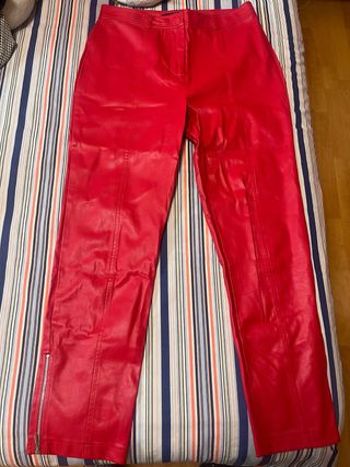 Pantalones Guess de color rojo vibrante con un diseño moderno. - Cremalleras plateadas en los tobillos. - Costuras decorativas verticales. - Cintura alta.