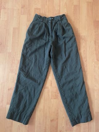 Pantalones de corte clásico en color verde oscuro, con un diseño vintage. 36/S mujer - Cintura alta con trabillas. - Cierre de botones. - Pliegues delanteros.