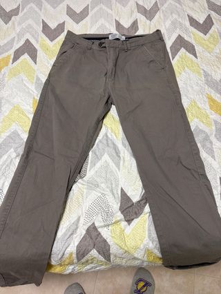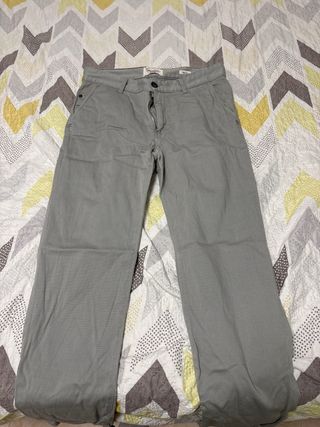 Pantalón chino gris claro. Talla 42. 100% algodón. Corte recto. Bolsillos delanteros en diagonal. Muy cómodo y en perfecto estado. Medidas en las últimas fotos. Hecho en España.