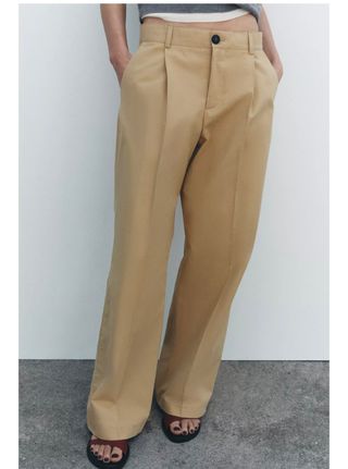 Pantalón chino de la marca Zara en color beige. - Talla 40. - Corte moderno y versátil.