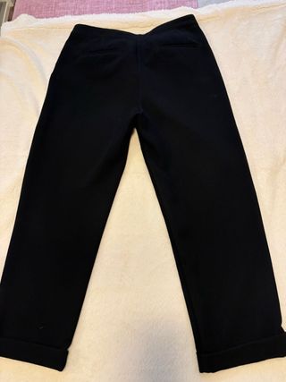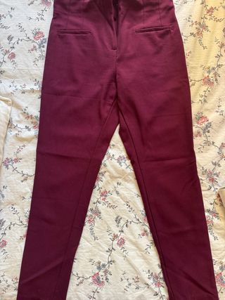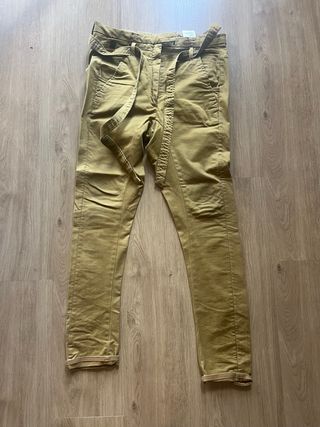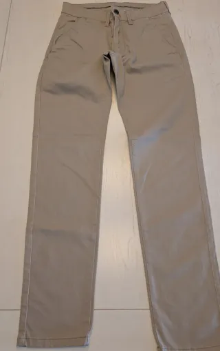 Pantalón tipo chino de corte moderno. - Diseño con pinzas. - Cierre de botón y cremallera. - Bolsillos laterales. Nunca usado. Me equivoqué de talla. Uso T. 36 y modo 1.70, pero me están algo justos y algo cortos. Perfectos para una 34 o xs y para chicas/mujeres de 1.60 - 1.65 cm. Perdí el ticket y no lo puedo descambiar. Comprado hace dos semanas.
