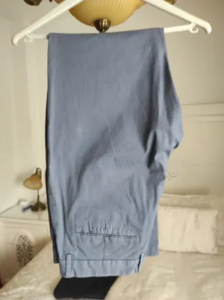 📝 Descripción: Pantalón de tipo chino de color azul marino claro, de corte ajustado. 👌 Estado: Bueno. Con pequeñas manchas en una de las piernas 🔍 Calidad: 8/10 👕 Talla: W31 📦 Envío: 24 - 48 horas tras hacer la compra
