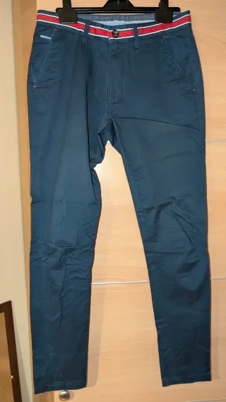 Pantalones chinos elásticos para hombre, ideales para un estilo casual o semi-formal. el azul tiene una pequeña máncha - Tejido elástico para mayor comodidad. - Diseño tipo chino.