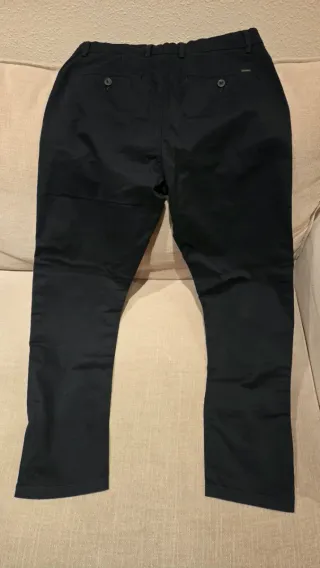 Pantalón chino azul marino para hombre, en muy buen estado. - Corte recto - Dos bolsillos traseros con botones. - Tejido de algodón resistente.