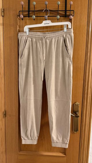 Pantalones de Zara en color beige, con un diseño moderno y cómodo. Talla L - Cintura elástica con cordón ajustable. - Bolsillos laterales. - Puños elásticos en los tobillos. - Costuras detalladas en las perneras.