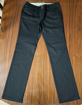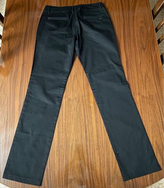 Pantalones estilo chino en color negro. Son cómodos y versátiles. - Corte recto. - Cierre de cremallera y botón. - Bolsillos delanteros y traseros.