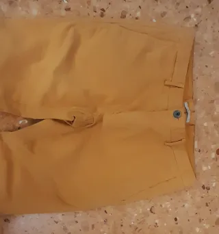 Pantalón de la marca Cortefiel, talla 40, en color beige/camel claro, muy fácil de combinar. Corte recto con diseño tipo chino, ideal tanto para looks casuales como más arreglados. Tejido cómodo y ligero, perfecto para entretiempo o primavera-verano. ✔️ Cierre con botón y cremallera ✔️ Bolsillos laterales ✔️ Color neutro y atemporal ✔️ Marca de calidad Estado: bueno, con uso normal (ver fotos). Se vende por falta de uso.