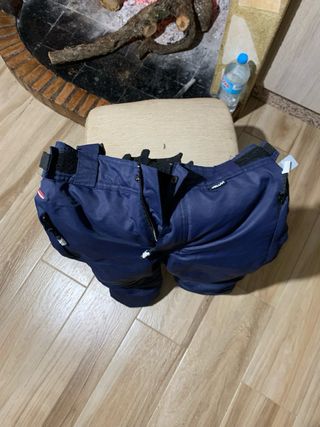 Pantalones de esquí de color azul, perfectos para esquiar, talla 14 como se ve en la imagen - Cremalleras laterales. - Cintura ajustable. - Tirantes ajustables La raja que se ve en la ultima foto fue al ponermelos recientemente que no me estan bien, y por eso los vendo en su dia me costaron 90€ lo unico que tiene es esa raja que con poca costura tiene, si la hago yo cambio la descripción :)