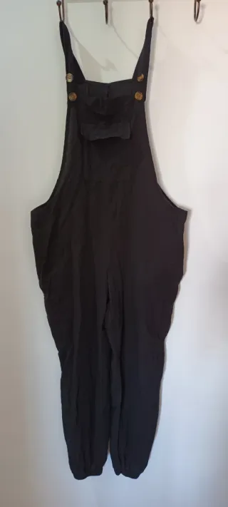Pantalón de peto en talla XL. Está en buen estado. - Es de color azul verdoso. - Tiene bolsillos laterales. - Diseño de peto con tirantes ajustables por botón.
