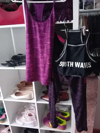 Conjunto deportivo de dos piezas, incluye un top deportivo y otra prenda - Top deportivo con tirantes. - Pantalón deportivo con estampado. - Se incluye una prenda adicional de regalo.