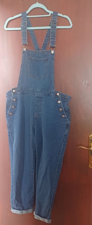 Peto vaquero azul, en perfecto estado. Puesto una sola vez - Diseño clásico con tirantes. - Bolsillos funcionales delanteros y traseros. Y los botones si no los abrochado se quedan bolsillos - Cintura elástica para mayor comodidad. - Corte recto, estilo casual.