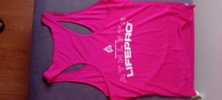 Top deportivo de tirantes en color rosa, ideal para entrenamientos. - Diseño con espalda cruzada. - Tejido ligero y transpirable.