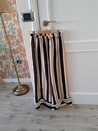 Preciosa y elegante conjunto de pantalón y top de satén. Ideal para una ocasión especial. -Pantalón de tiro alto y pernera ancha. -Top de tirantes, estilo bandeau. -Tejido fluido y suave.