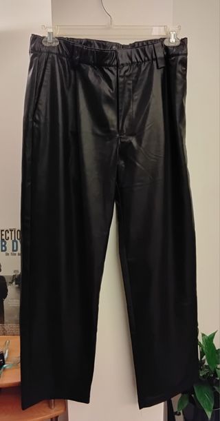 Pantalones de polipiel negros, ideales para cualquier ocasión. Son elegantes y cómodos. - Diseño moderno y favorecedor. - Material de polipiel de alta calidad. - Perfecto estado.
