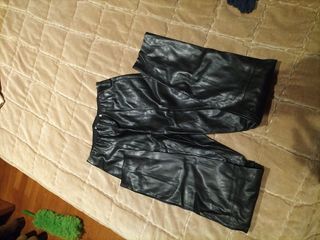 Pantalón de cuero, negro, talla 46, largo 101 Cms, ancho de bajos 19 Cms dobladillo 4 Cms, para poder alargar la pernera. Sólo fue usado dos veces. Fabricado en España.
