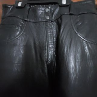 Pantalón de cuero negro con un diseño clásico. Aunque la etiqueta pone 40 es mas bien una 36/38 - Material: Cuero auténtico. - Color: Negro. - Interior forrado.