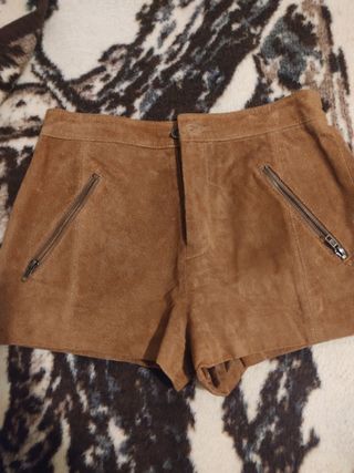 Nuevo,enseño cintura y perneras para que se vea que no está gastado ni rozado.hay fotos con medida de cintura,cadera y muslo.en la cintura tiene goma Pantalón corto con un diseño moderno y elegante. - Material con efecto piel. - Cintura elástica con detalle de lazada. - Corte holgado.