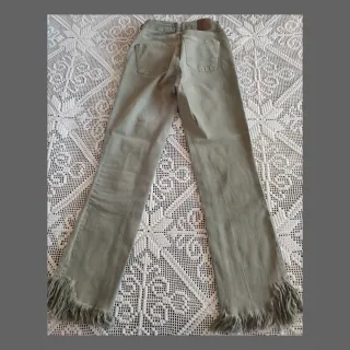 Pantalón de corte recto con un diseño moderno y detalles únicos. - Piernas acampanadas. - Bajo con flecos deshilachados. - Etiqueta de cuero en la parte trasera.