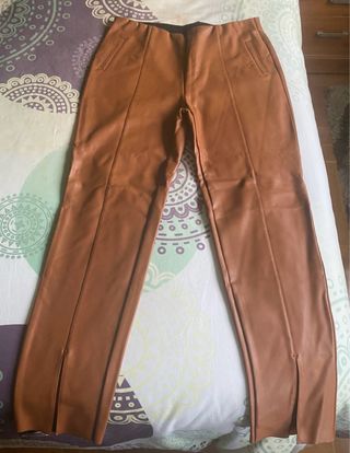 Pantalón de polipiel sin estrenar, en perfecto estado y con etiqueta. Con cremallera invisible en un lateral y también en los bajos para hacer más ancha la pernera.