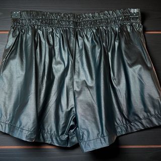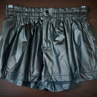 Pantalón corto efecto polipiel en color negro con cierre de boton y goma en la parte de la cintura. tallas disponibles: M y L