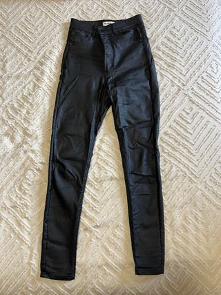 Pantalon pitillo negro efecto cuero de Pull&Bear talla 34