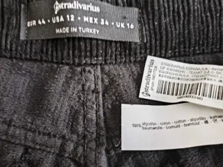 Pantalón de pana en color marrón chocolate de la marca Sfera. Talla 40 nuevo sin etiqueta es micropana elástico aterciopelado - Tejido de pana. - Diseño de cinco bolsillos. - Etiqueta decorativa en la parte trasera.
