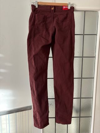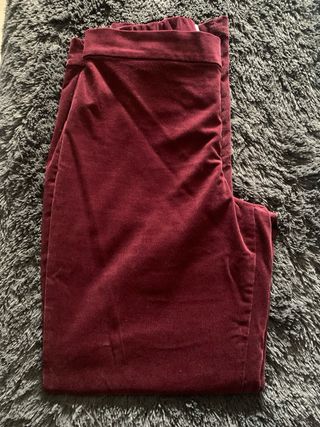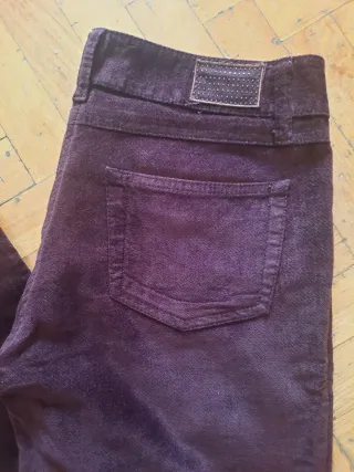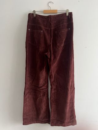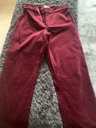 Pantalón de pana en color burdeos, piel de melocotón( terciopelo) - Tejido suave, cómodo y elástico. - Diseño de pierna ancha.Solo vendo en mano zona sur de Madrid