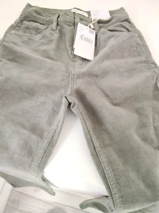 Pantalón de pana de corte recto en color verde oliva, nuevo sin usar ancho cintura 36 cms y largo entrepierna 74 cms - Tejido de pana fina - Cierre de cremallera y botón. - Bolsillos delanteros y traseros.