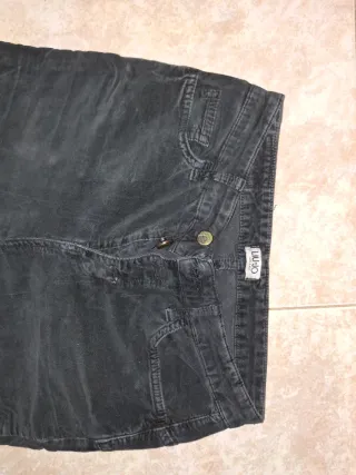 Pantalón de pana/ante de la marca Liu Jo en color negro. Talla 38 - Corte acampanado. - Cierre de botones. - Detalle de costuras.