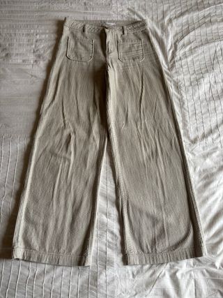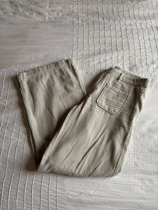 ℹ️ Pantalón de pana con textura a rayas de color beige/crema, con dos bolsillos delanteros y dos traseros, con cierre de cremallera y botón 🏷️ Green Coast 📏 Talla 36 🪡 Se encuentra en perfecto estado, sin uso y sin imperfecciones 🧶 100% algodón 📲 ¡No dudes en preguntarme cualquier cosa! 💰 Precio negociable