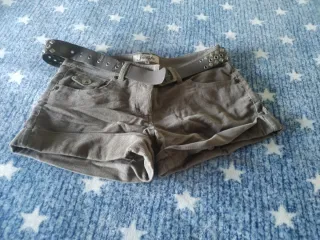 Pantalón corto de pana en color gris. Presenta un diseño moderno y cómodo. - Tejido de pana. - Cinturón con tachuelas incluido. - Dobladillo en los bajos.