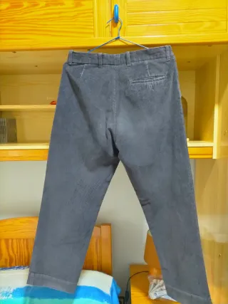 Dos pantalones de pana fina talle bajo,con bolsillos,de campana,talla 40,, color gris y verde kaki,el gris tiene pernera una mancha ajunto foto.los dos por 10€